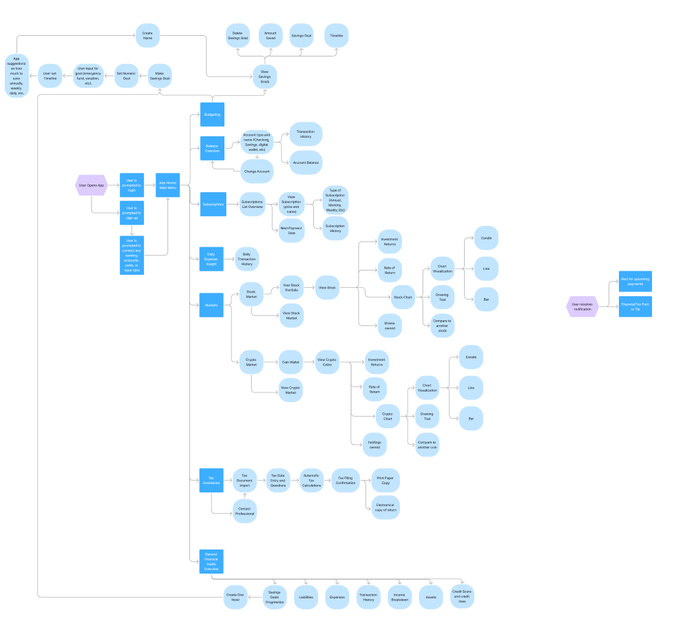 In this project, I utilized Figma to create multiple high fidelity versions of my app across multiple devices to simulate a responsive design. To achieve this, I first devised an idea for the app by thinking about some of the problems that I had to face whenever I would use my electronics. I decided on creating an app called Paymare, an app that primarily focused on tracking, budgeting, and savings that also helps with subscriptions, tax filing, market charting, and financial literacy. It also helped keep your finances organized and reminded the user of payments through push notifications and set reminders. Because of the project’s complexities, it was necessary to first plan out the design and what the goals of the app were. I created a written plan for the app through a design strategy template, where I then explained user goals, drew app wireframes, completed relevant research, laid out app features, considered responsive design choices, etc. After this initial process of developing a design strategy and creating app wireframes, I then went and created a mind-map to design the overall structure of the app and visualize how each of the features would work in relation to one another (From planning to wireframing to mindmapping, this took around 2 weeks). After creating the framework for the app and having everything planned out, I created a mobile version of the app. I created 11 carefully designed screens with prototyping for my mobile section of the app, which I then used as a foundation to create my other devices screens (over the course of 2 weeks). In addition to the mobile screens, I chose to make screens for desktop and an Apple watch. Varying from device to device, I made platform specific optimizations to streamline the process of using the app, aligning the user’s goals with app design to make using the app more efficient. I made 18 screens for the desktop version (over the course of 2 weeks) and 5 screens for a wearable (over the course of 2 weeks). After completing the first draft of my screens, I then did user testing to test my design and evaluate app functionality and efficiency. I created a usability test plan of 5 tasks that multiple participants had to complete. While completing the tasks, the participants were required to record themselves navigating through the tasks and then give their feedback at the end of the video (over the course of 2 weeks). At the end of the user testing phase, I collected all feedback and did an analysis on pain points and points of friction during the tasks. By further scrutinizing my design and taking in my usability test feedbacks, I made some minor tweaks and revisions to the screens. The study found that parts of my design were a little bit confusing and unnecessary, so after expediting processes like account creation and disconnecting integrated wallets, I went ahead and also did some accessibility changes such as making texts larger and adding alt text (over the course of a week).